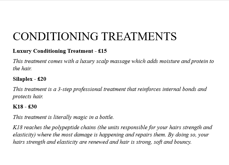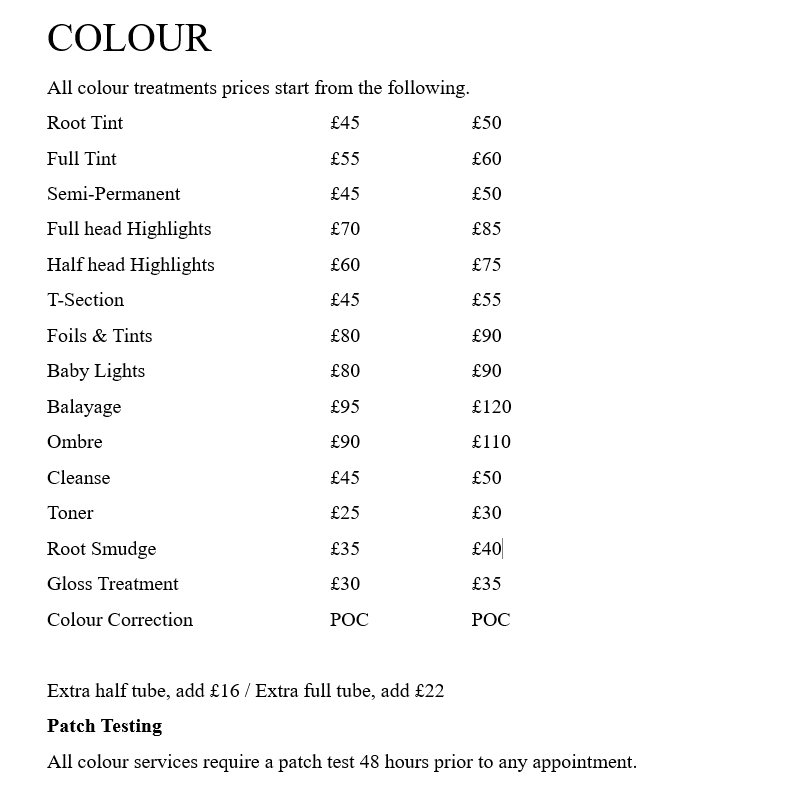 A minimum of 24 hours’ notice is required for all cancellations or changes of appointments. Less than 24 hours’ notice for any cancellation, no shows or changes of appointments may be charged 50% of the appointment cost.
